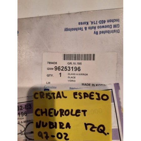 cristal retrovisor Chevrolet nubira lado izquierdo año 97 al 02 producto nuevo marca original referencia 96253196 recambios nuevos ocacion y usado enviamos a toda españa