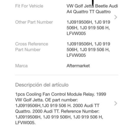Rele ventiladores audi volkswagen Seat referencia en la foto