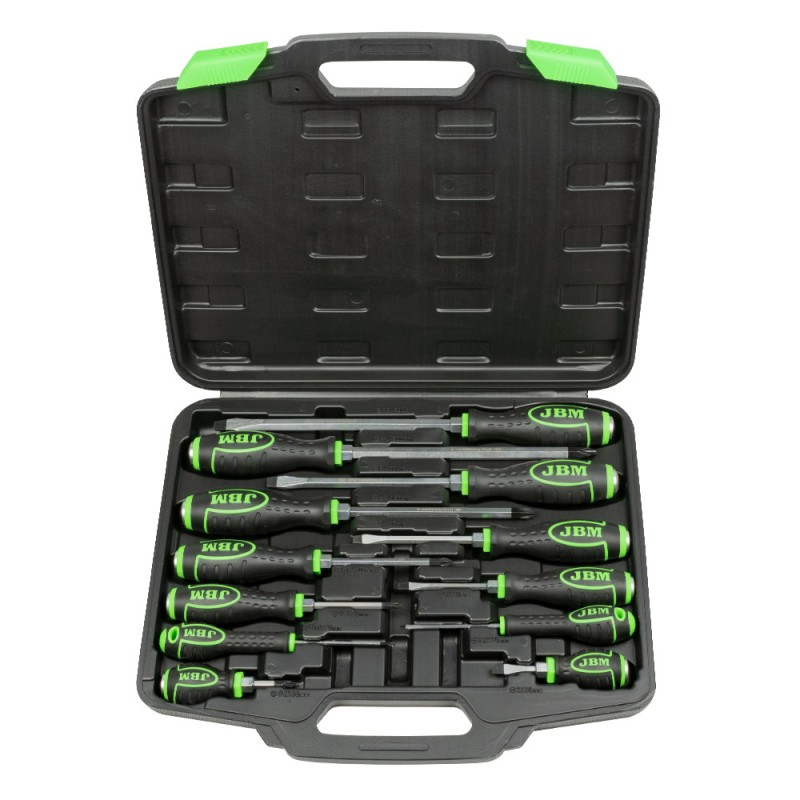 JUEGO DE DESTORNILLADORES DE GOLPEO PUNTA IMANTADA JBM REFERENCIA 54126 MARCA JBM Destornilladores Phillips: PH0x75mm PH1×75mm PH2×38mm PH2×100mm PH3×150mm PH4×200mm Destornilladores planos: SL3.2×75mm SL5×75mm SL6×38mm SL6×100mm SL8×150mm SL9.5×200mm PRODUCTO NUEVO, MARCA ORIGINAL. PRODUCTOS NUEVOS Y DE OCASION, ENVIAMOS A TODA ESPAÑA.