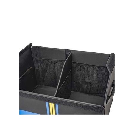Diseño multiuso inteligente. Puede utilizarse tanto como bolsa de almacenamiento para el maletero fácil de transportar, así como alfombrilla de maletero cuando está plegada. Fabricación resistente y duradera. Gracias a las paredes laterales de los compartimentos, la base y los divisores confieren una forma robusta y rígida. Compartimentos ajustables gracias a su sub divisor extraíble para ajustar fácilmente el compartimento interior según sus necesidades. Bolsa de maletero de 50 x 30 x 30 cm de gran capacidad. Organice sus pequeños aparatos electrónicos, comestibles, suministros, kits y mucho más en el amplio espacio de almacenamien