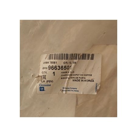 BISAGRA IZQUIERDA PORTON TRASERO PARA LOS MODELOS: CHEVROLET EPICA 2006-2012 REFERENCIA: 96636501 PRODUCTO NUEVO MARCA ORIGINAL ENVIAMOS A TODA ESPAÑA