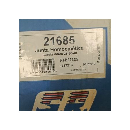 JUNTA HOMOCINETICA LADO RUEDA PARA LOS MODELOS: SUZUKI VITARA 2.0 1988-2002 SUZUKI GRAND VITARA 1.6 / 2.0 / 2.5 1998-2008 ESPECIFICACIONES: DENTADO EXTERIOR, LADO DE RUEDA: 26 DENTADO INTERNO, LADO DE RUEDA: 30 DIÁMETRO DE JUNTA TÓRICA: 48 MM ESPECIFICACIÓN: GRUPILLA INTERIOR LADO DE MONTAJE: LADO DE RUEDA REFERENCIA: 21685 PRODUCTO NUEVO MARCA SERCORE ENVIAMOS A TODA ESPAÑA