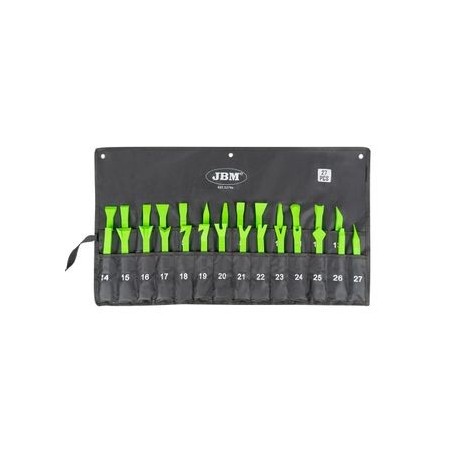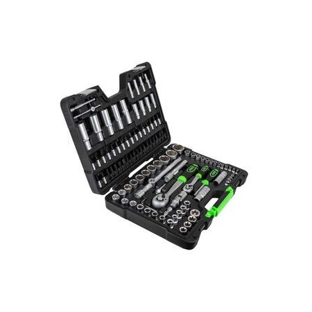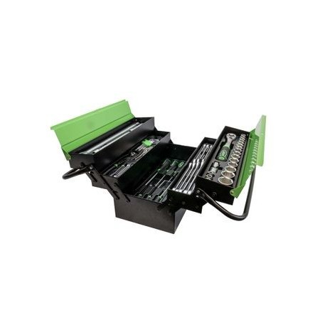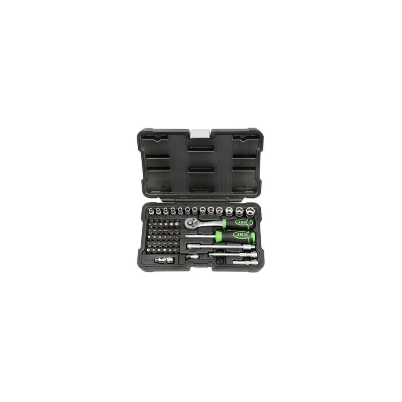 56 PIEZAS CON VASOS HEXAGONALES CINCADO Maletin de Herramientas Herraminetas de 1/4" : 13 vasos hexagonales de : 4, 4.5, 5, 5.5, 6, 7, 8, 9, 10, 12, 13 y 14 mm 1 carraca 72 dientes con expulsador de vasos 1 mango destornillador 1 articulación universal 1 barra flexible 1 adaptador para puntas 1 adaptador macho para llaves de vaso 35 cabezales de CR-V de 25 L Allen : 3, 4, 5, 6, 7 y 8 mm Punta XZN : M5, M6 y M8 Estrella doble : #0, #1, #2 Estrella : #0, #1, #2 Plano : 4, 5, 6 y 7 Torx : T8, T10, T15, T20, T25, T27, T30 y T40 Torx (Inviolable) : T8, T10, T15, T20, T25, T27, T30 y T40 2 barras de extensión de 50 mm y 100 mm REF: 54105