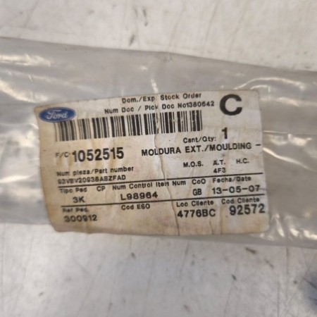 MOLDURA PUERTA DELANTERA DERECHA PARA LOS MODELOS: FORD TRANSIT 1994-2000 REFERENCIA: 1052515 PRODUCTO NUEVO MARCA ORIGINAL ENVIAMOS A TODA ESPAÑA